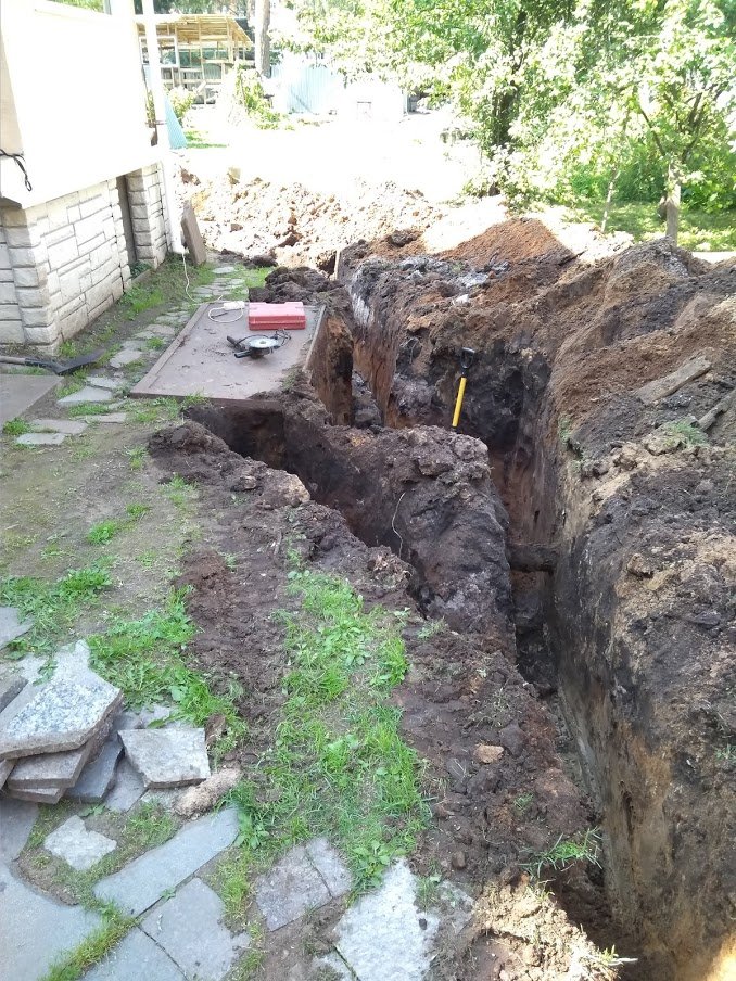 Прокапать траншею водопровода, около 25 метров.
