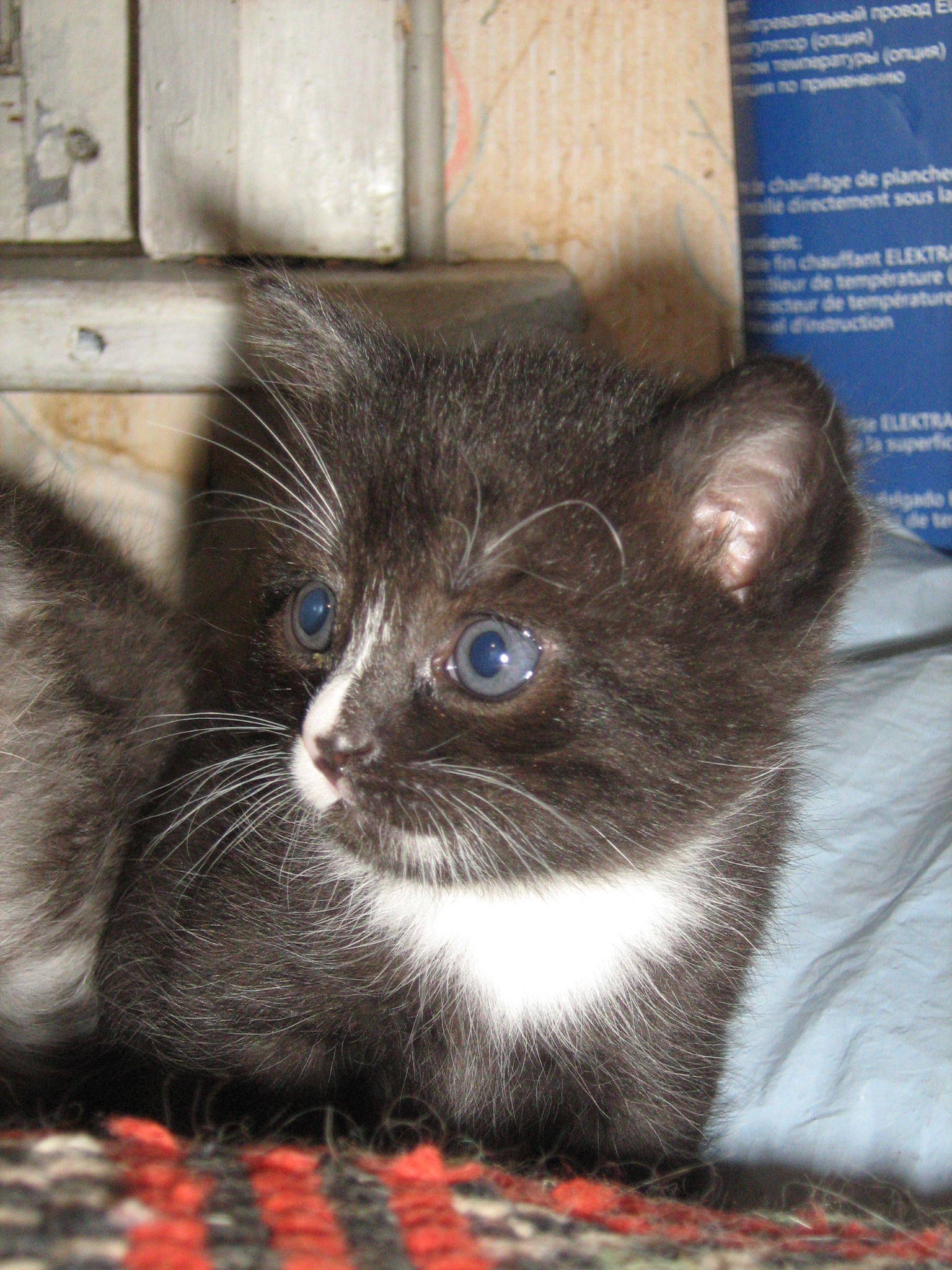 Котята :arrow: : серебристо-серый - мальчик, черный с белым - мальчик, черная с небольшими рыжими пятнышками - девочка. Котятам через пару дней - месяц. У девочки уже сейчас наблюдается очень спокойный характер, у черного мальчика очень любопытствующий нрав - ни минуты на месте, еле сфотографировала; серебристый - наверное самый красивый будет - весь в мать пошел.