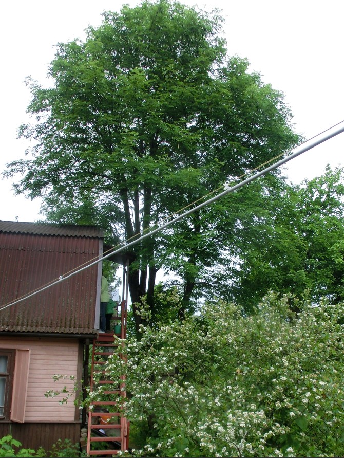 . Все сделано аккуратно, быстро. В конце в качестве бонуса отпилили нависающие над проводами ветки черемухи.