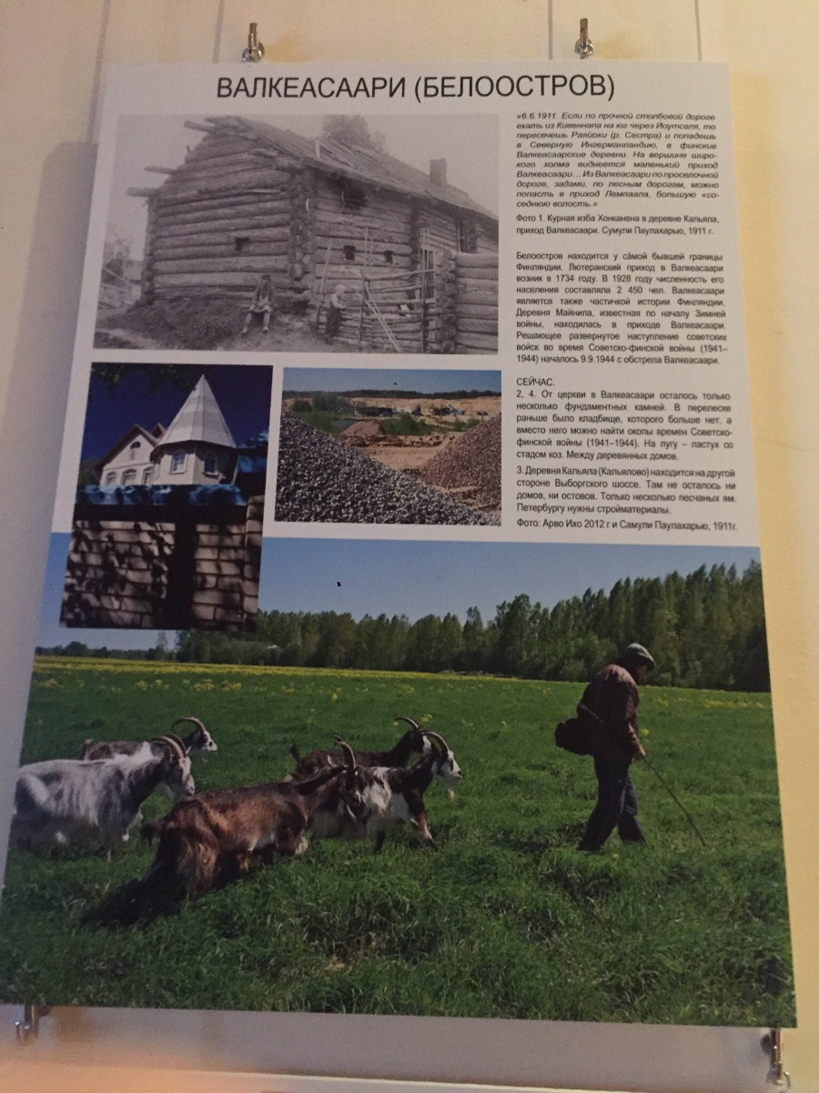 Довелось мне сегодня вновь побывать в замечательнейшем нашем Российском этнографическом музее. Пришёл я туда не просто так погулять, а с конкретной целью - увидеть новую фотовыставку «По следам Самули Паулахарью». Данное имя форумчанам должно быть знакомо по выкладывавшимся здесь дореволюционным фотографиям Калелово (или Калелова, как вам приятнее), предельно детально передающим дух времени и особенности повседневного быта местного ингерманландского населения. Как известно, Паулахарью на своём велосипеде объехал насквозь почти всю Санкт-Петербургскую губернию, от нашего Белоострова до Веймарна близ эстонской границы. А на данной фотовыставке вкупе с фотографиями Паулахарью представлены также современные фотографии, сделанные на тех же (или примерно тех же) местах, что и работы финляндского фотографа группой ингерманландских финнов (и одного ижора) из Финляндии и России - Ауне Кямяряйнен, Марья Кархула, Хелена Миеттинен, Арво Ихо, Пинья Валья, Антти Миеттинен, Дмитрий Харакка-Зайцев, Тойво Тупин и Микко Кархула. Они полностью повторили маршрут Паулахарью (правда, не на велосипедах, почему-то) и теперь решили представить свою работу публике. Среди прочих отдельное место на фотовыставке выделено было и Белоострову -