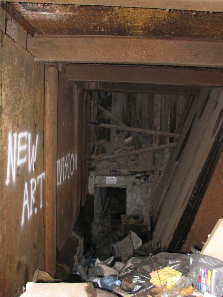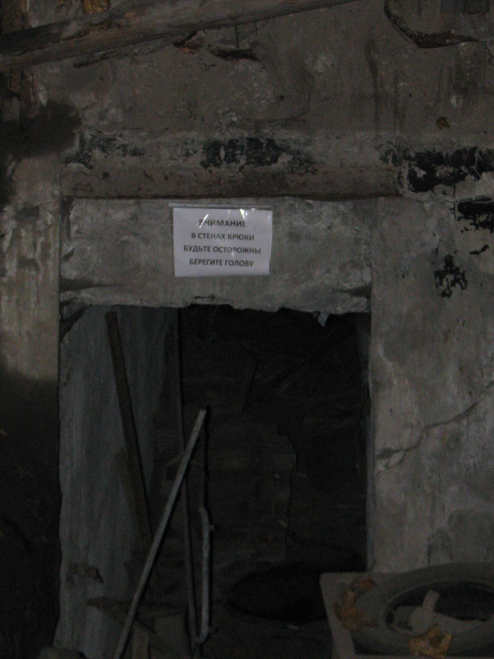 Во время фотосессии подошла бабуля и поинтересовалась, не собираемся ли мы лезть внутрь, т.к. "кто только туда в последнее время не лазал". И предупредила, что если таки полезем, то что б были осторожней, "а то там вдруг какие-нибудь капканы или ещё что-то". И просветила нас, что здесь был "штаб флота", а "вон там (на Невке) у них стояли катера". И что "всё сделано из корабельной брони". Т.о. лишний раз подтвердился вывод LYNX о несомненной пользе контактов с местным населением.
