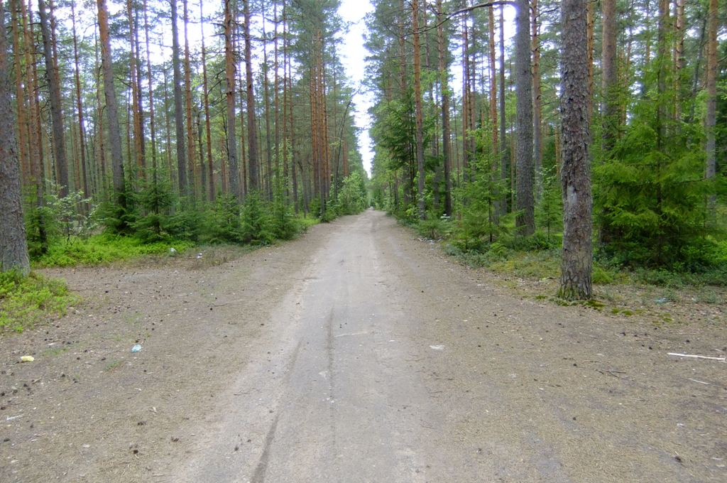 Насколько я понимаю, на этом месте в начале 20 века планировался дачный поселок. Сетка улиц видна на карте 1909 года. Называлось все это "2-й Сестрорецк", или "Новый Сестрорецк". "Прямая, как стрела" ((с) Логунцов) дорога шла от станции Оллила. Она и сейчас идет от станции, а просеки на спутнике показывают старую уличную планировку.