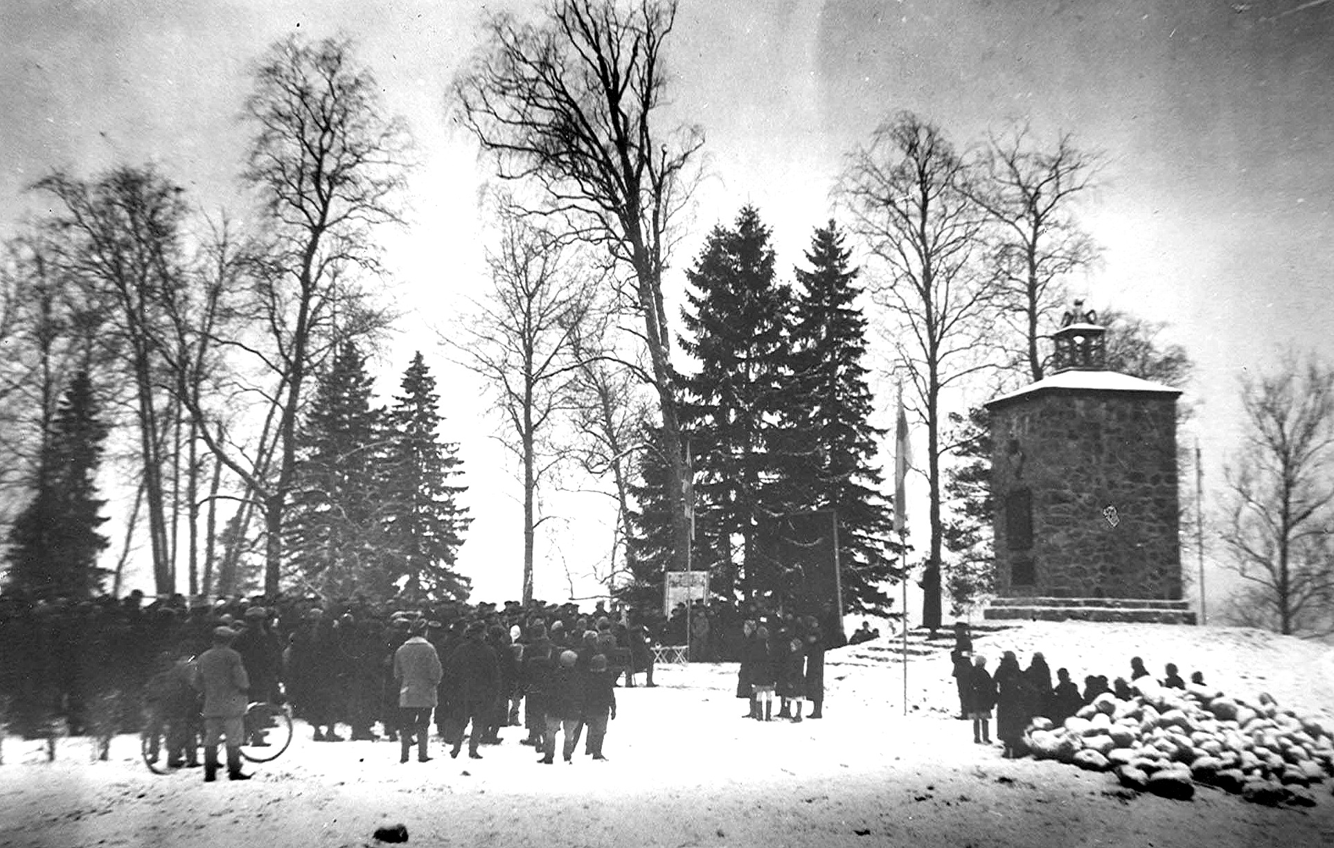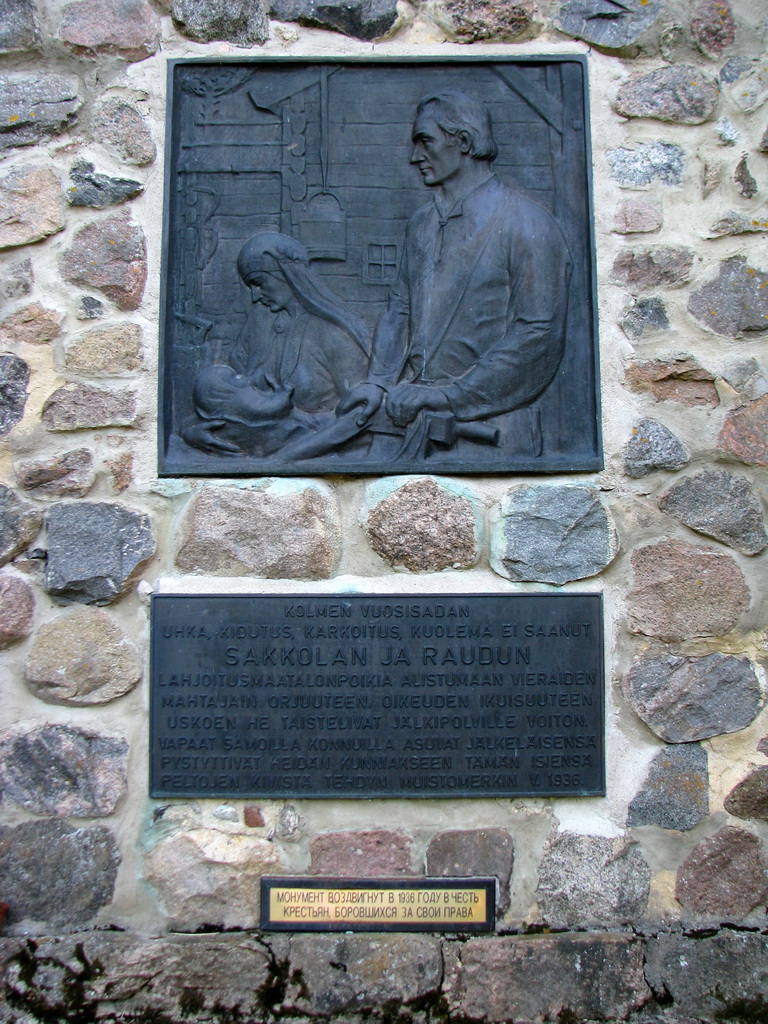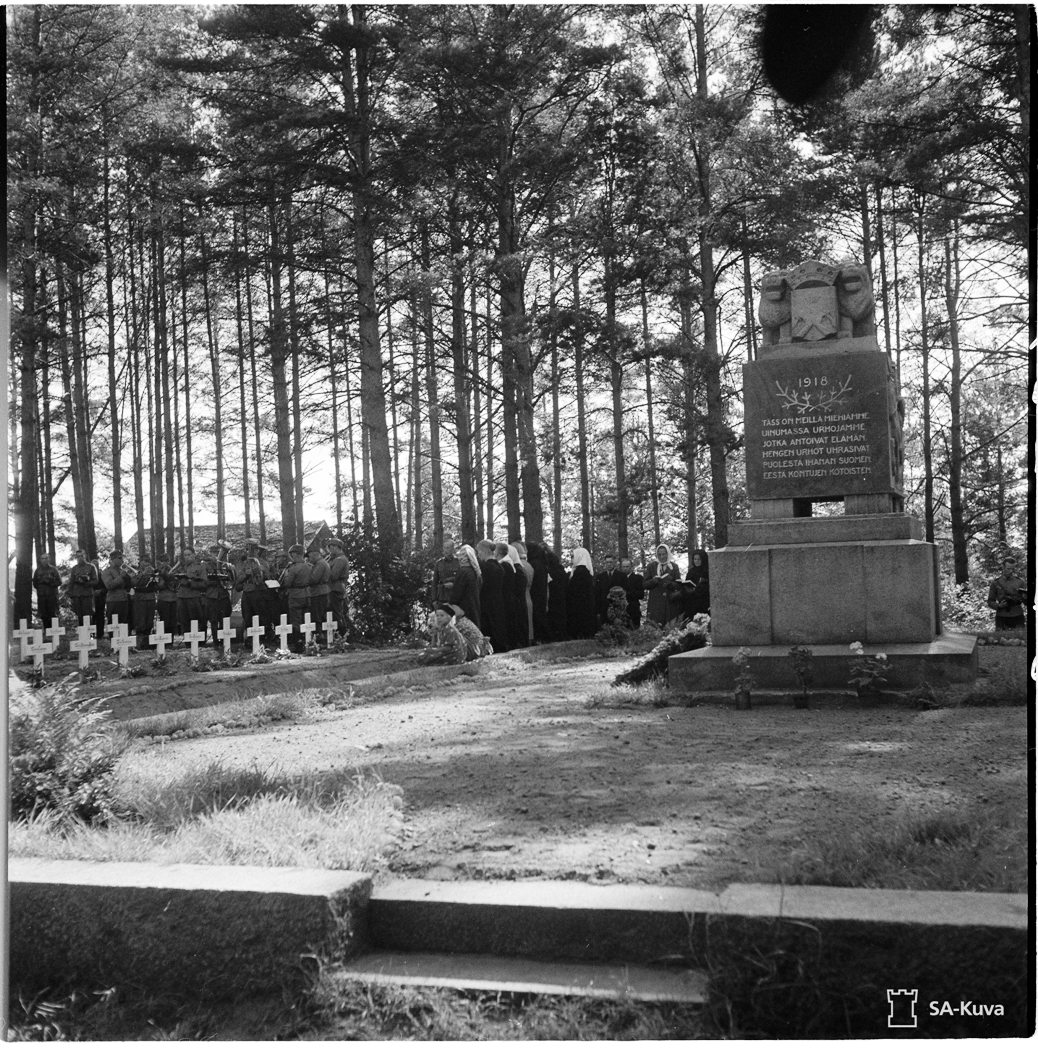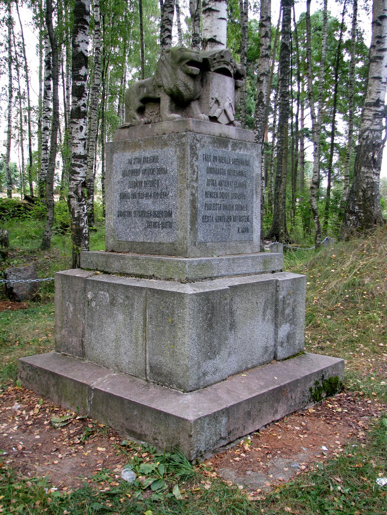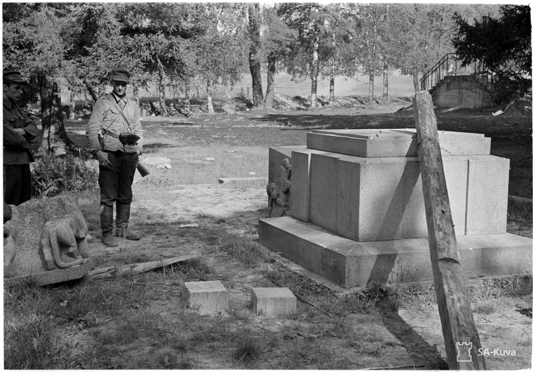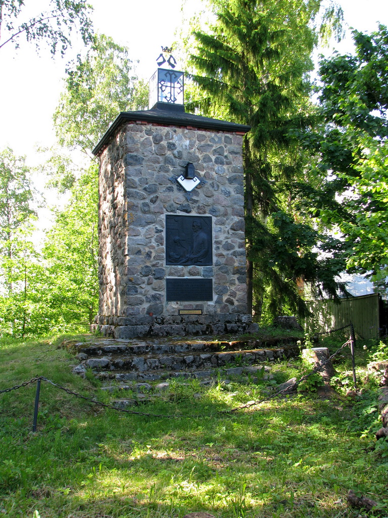 Здесь были захоронены 20 жителей волости Саккола, погибших во время гражданской войны 1918 года. В 1921 году по проекту художнике Илмари Вирккала и при содействии строительной фирмы "Гранит" был поставлен памятник из гранита в виде большого куба с надписями, над которым возвышались львы, державшие в лапах щит в виде герба Карелии. Текст на памятнике гласил: Здесь спят мужи, Богатыри наши. Они, Преданные всей душой, Отдали жизнь За прекрасную Суоми, За отчий дом. Братская могила воинов Зимней и Летней войн (1939-40 и 1941-44 годов) располагалась здесь же - рядом с кирхой. В советское время могильные памятники были утрачены, но вновь восстановлены в последнее десятилетие. Только сохранившиеся каменные львы украшают верхушку нового памятника на могиле 1918 года.