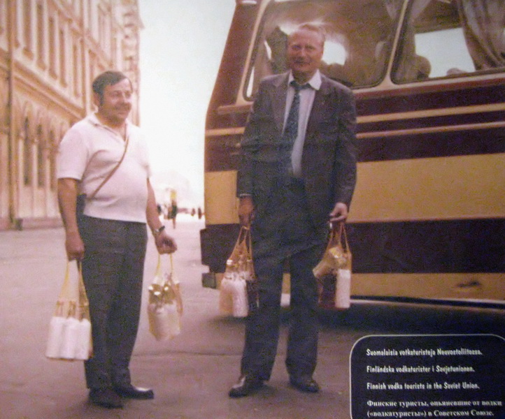 Однако, написано "Финские водкатуристы в Советском Союзе". Т.е. они у нас приобрели водку, завёрнутую в бумажки. ОК, понятно. Но как они её провозили домой в таком количестве? Таможня-то не купится, как я, на белый цвет бутылок 8O