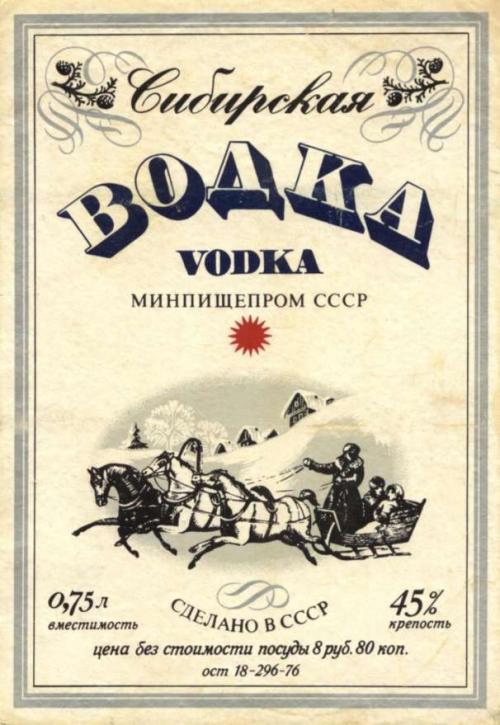 Год неизвестен, а видно оттуда, что бутыль большая и с винтом. Стало быть, 0,75. Правда, в "Берёзках" вряд-ли Сибирской торговали, скорее, Столичной..