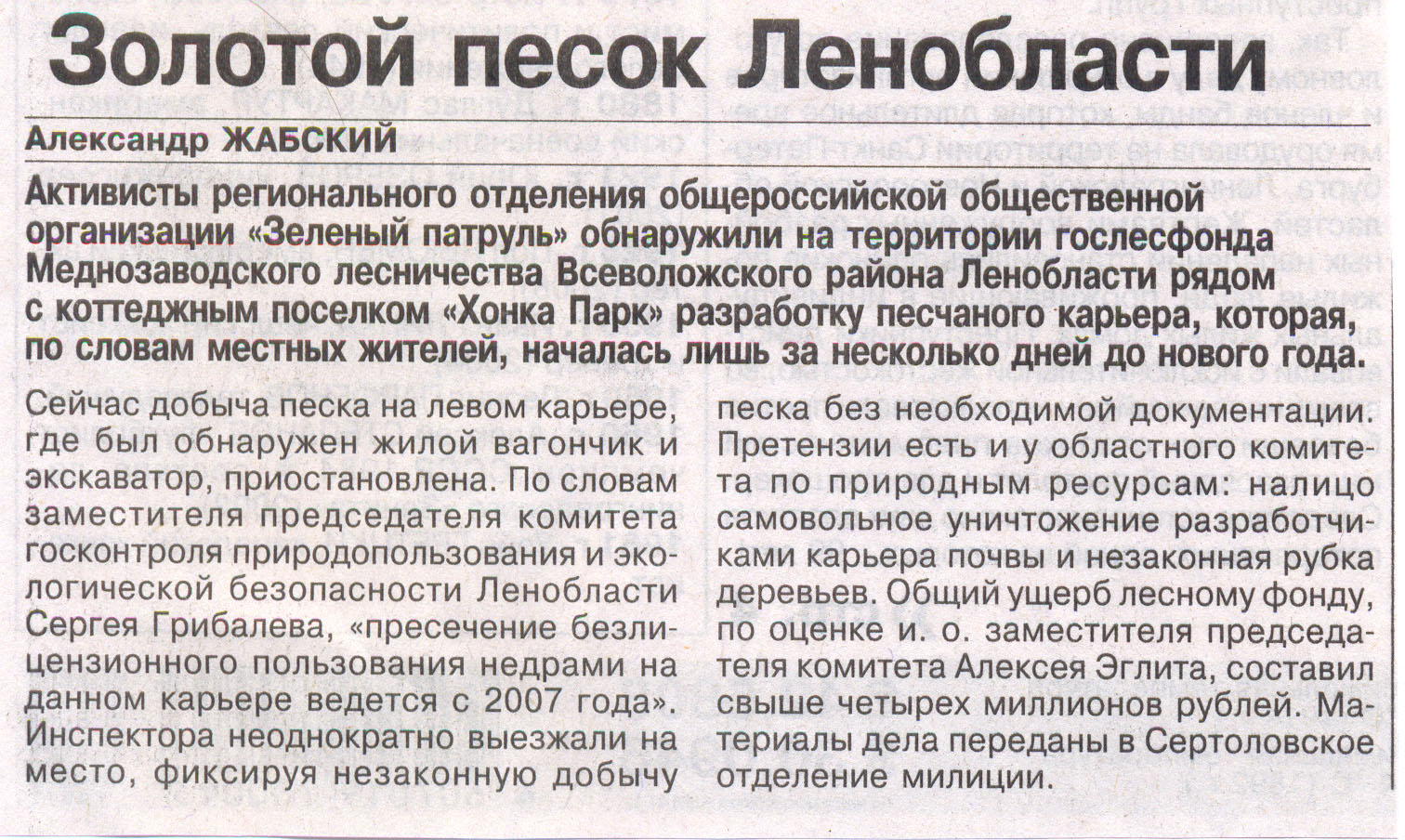Во вчерашних "Санкт-Петербургских ведомостях" опубликована статья. Похоже, речь ведется о карьере рядом с ОРПК "Алмаз".