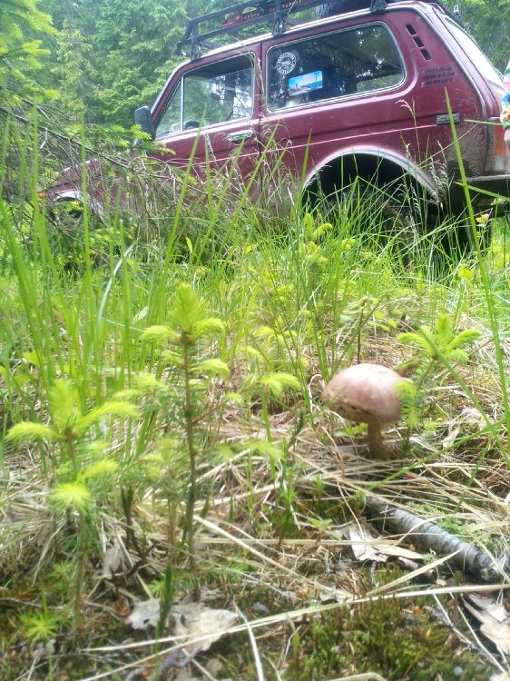 ,пока мы выковыривали машины наши боевые подруги пытались собирать грибы.Из хороших пара красных,остальное лисички и сыроежки.Суммарно может на жареху все и собрали