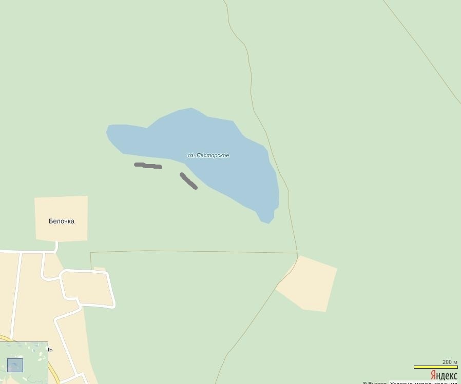 Более поздний белочкин пляж находился как раз там, где он и обозначен - на самой западной оконечности озера, рядом с плотиной.
