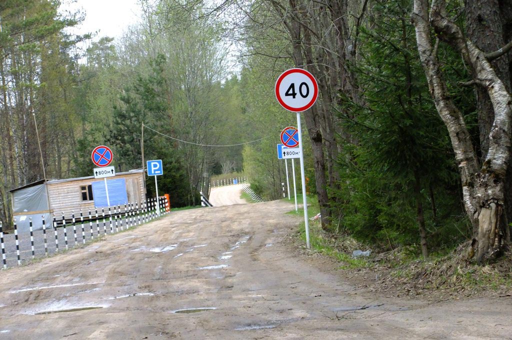 Стоянка перед Пасторским ручьём обросла целой кучей дорожных знаков. Особенно должен повеселить водителей знак ограничения скорости.