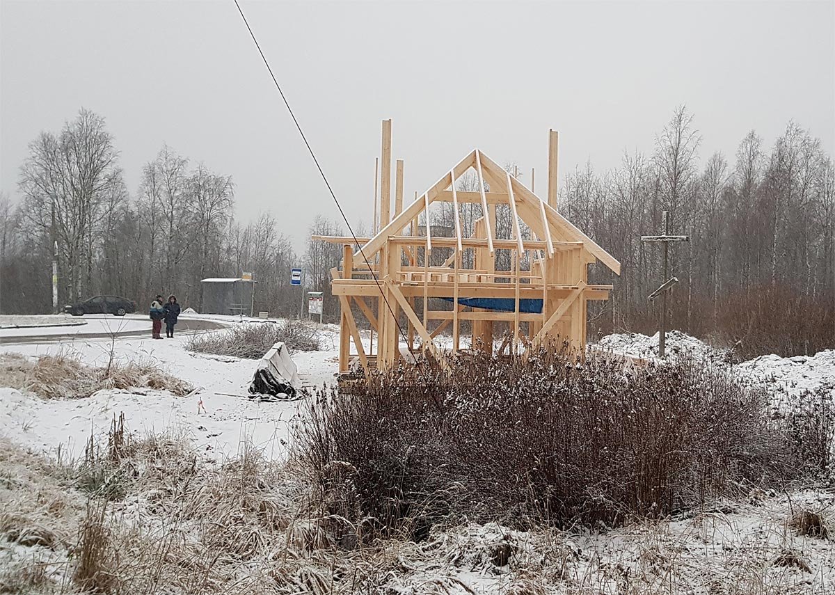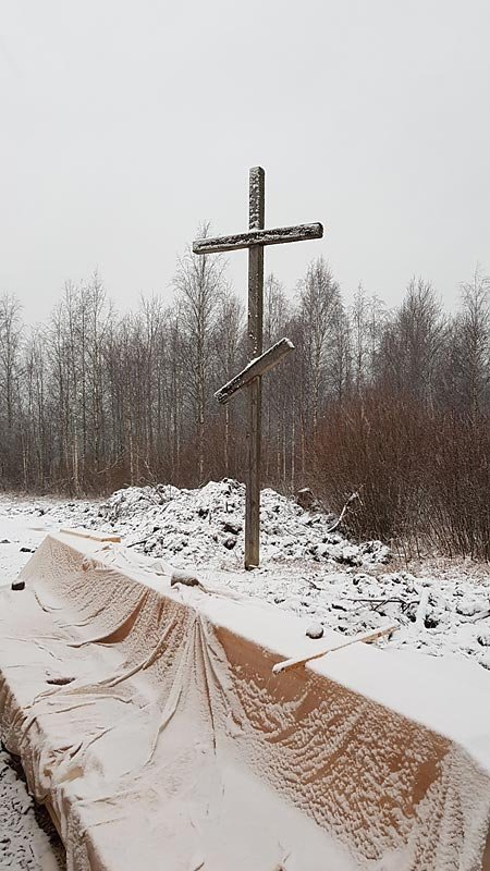 Получил на неделе звонок от ув. краеведа эксперта с сообщением о том, что на пресловутом земельном участке таки начато строительство православного храма. Сегодня выехал в Белоостров, заехал за краеведом экспертом, и все вместе съездили к месту строительства.
