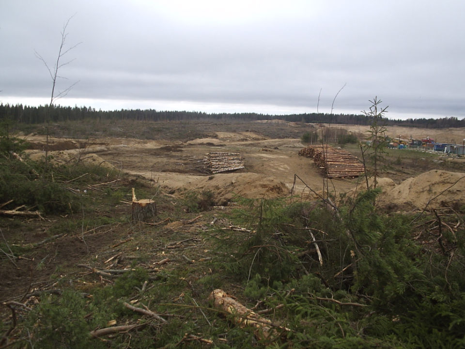В среду посетил район карьера.Финский памятник чуть ли не засыпан песком, все дорогу расширяют.Скамейку слева от памятника наполовину присыпали песком.