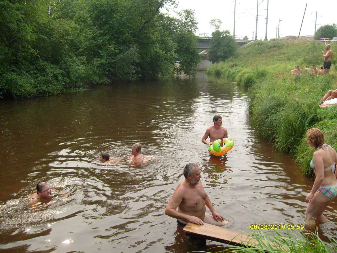 Старые финские камни такие же. Ниже фото август 2010. Белоостровцы купаются в Сестре. Видна доска для прыжков в воду, установленная на одну из 7-ми свай бывшего деревянного переходного таможенного моста.