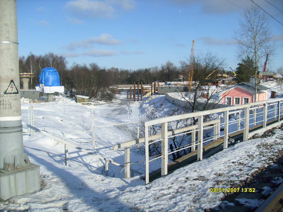 4 марта ярко светило солнце, поэтому решил прогуляться и сделать несколько снимков по объекту строящегося моста через реку Сестру. 2 фото сделаны с ж/д моста и остальные, в виде панорамы, сделаны с одной точки левого (русского) берега Сестры.