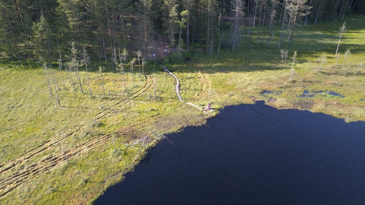 Кто и зачем пытался осушить? Военные в ВОВ? Ну да, в 1944-м там шли активные боевые действия (вообще в районе озера были финские "долгосрочные" укрепления). но сами финны вряд ли стали бы сушить свои авангарды в канун советского наступления. Да и структура линий странная... Вроде бы, "все путем", но перекрестье - т.е. "КП" - находится в самом-самом болоте, что как-то нелогично