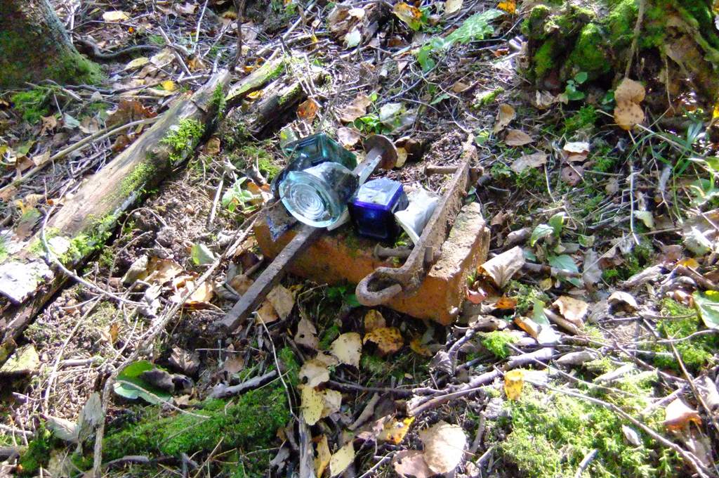 Когда я был в этом месте пару лет назад, мне оно казалось девственным. Были, конечно, следы копаний, но не в такой степени. Тут же - просто какое-то археологическое нашествие. Всё истоптано! А колодец - вообще центр чьих-то исследований. Там собраны в кучку все нарытые осколки, обломки, кости.. В прошлый раз я чуть не провалился в этот колодец, неожиданно появившийся у меня под ногами. В нём плавала довольная жаба, уровень воды был на полметра ниже верхнего края. Сейчас из него выкачана вода, совершенно однозначно и намерено выкачана.. Дорожки в лесу нахожены, благодаря чему погреб и был найден.