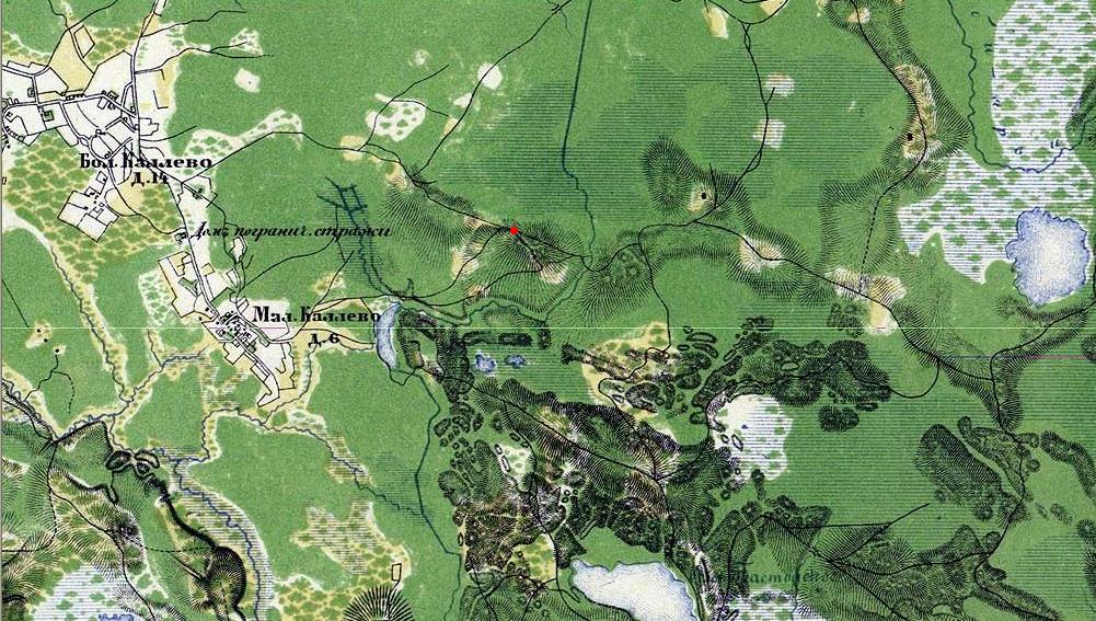 Да, уважаемый Osbourne, похоже, что красная точка на карте и есть тот самый перекрёсток, но постройки вдоль этой дороги явно там были. Я не могла ошибиться: с детства проводила каждое лето в бывшей финской деревне и насмотрелась на остатки хуторов, в том числе и в лесу. На этой дороге я видела заросшие фундаменты, кроме того, там есть развилка и от этой дороги отходит ещё одна бывшая дорога, которая приводит сразу к нескольким таким "постройкам". Мы не стали тогда досконально исследовать те места, потому что, как я писала выше, испытывала непонятное тревожное чувство (может быть, это просто "бабья" причуда...). Была идея: вернуться туда уже с навигатором, но после рассказов о медведях - даже не знаю...
