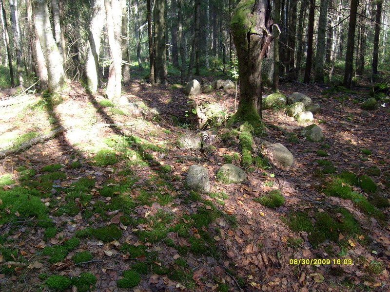 Камни фундамента сушильни для Силотвора ( к югу от земляного вала).