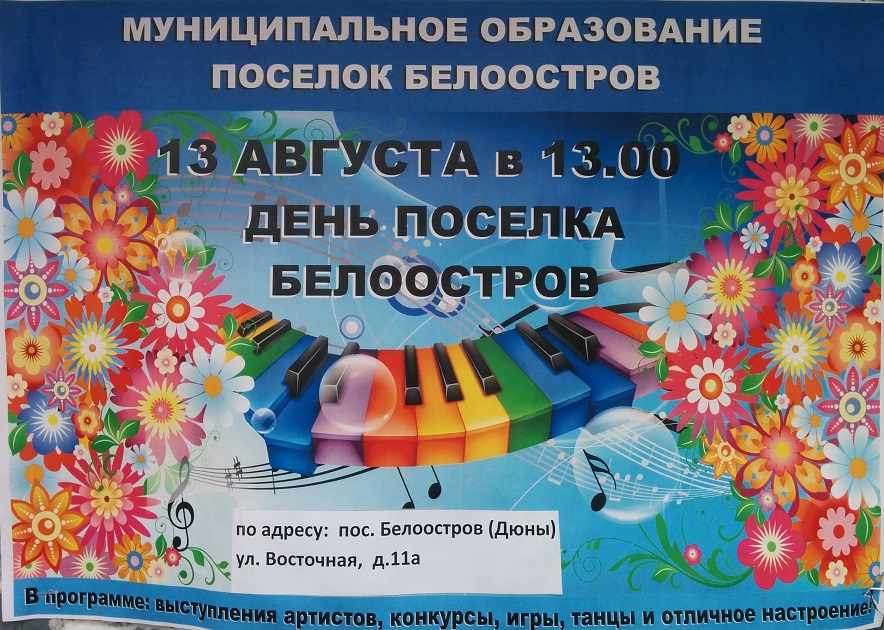 13 августа, в субботу праздник в честь Белоострова - На Восточной улице (я так понимаю ,это около бывшей школы, напротив э.подстанции), начало в 13-00.
