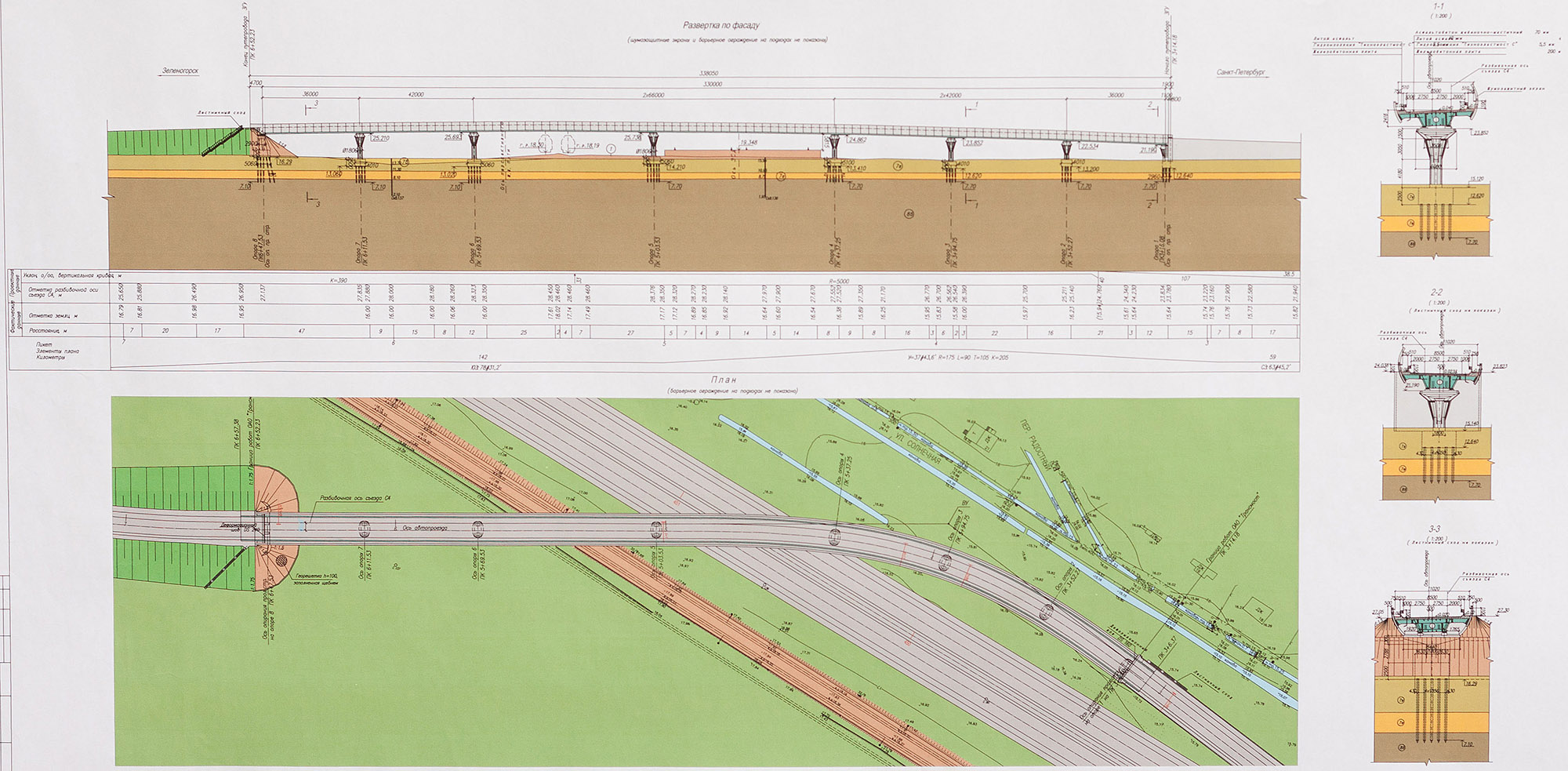 В месте расположения будущих опор моста через Сестру и далее над Александровским шоссе для определения слоев грунта были пробурены скважины глубиной 40 м. В начале августа, в месте расположения фундамента бывшего финского пограничного вокзала Раяйоки (после боевых действий 1941-1944 г.г. не сохранился), на удалении около 1 км от Сестры в сторону Выборга начал образовываться из вагончиков городок строителей ООО «мостостроительный отряд №48». Основной задачей которых является строительство в Белоострове мостов и виадуков. Городок расположился в 200-х м от будущего участка ЗСД (съезд со Скандинавии).