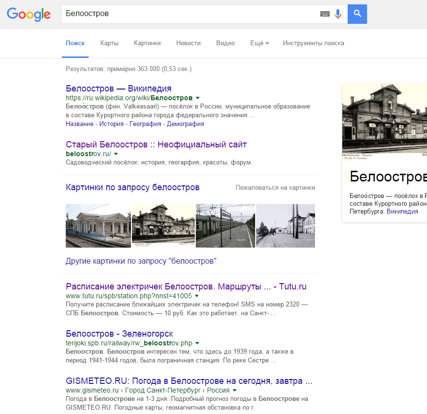 LYNX писал(а):Сегодня в гуглопоиске (коим я обычно и пользуюсь) сайт beloostrov.ru, как мне показалось, впервые появился на первой строке. Все время он был вторым, а сегодня первый