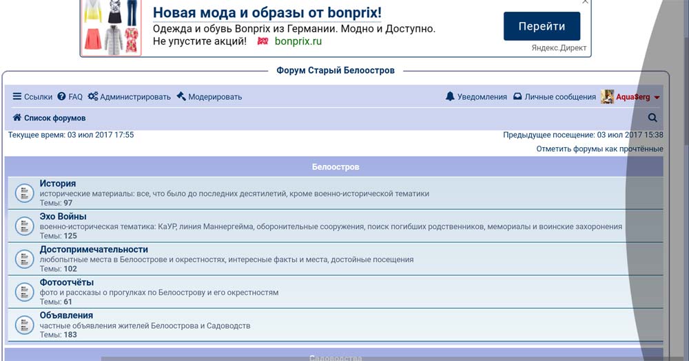 Изначально, если просто открыть закладку "Форум", все будет вот так: