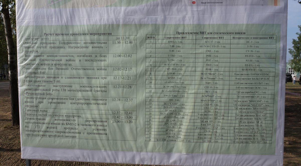 Основная часть - танковые представления, показательные выступления разведроты с использованием своего бензина, боеприпасов, пиротехники и тд. - за счет заведения