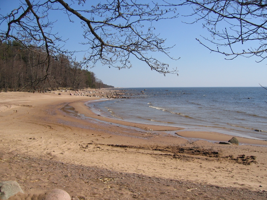 Береговая линия, вид на восток. Вдали угадываются мол и набюдательная вышка порта.
