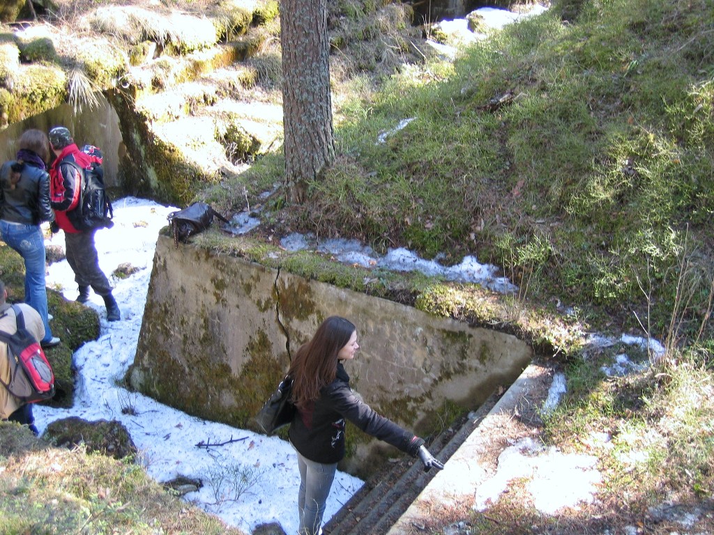 Вот здесь хорошо видно, что бетонированный. И даже спуск в траншею - по ступенькам. Хоть это-то уцелело...