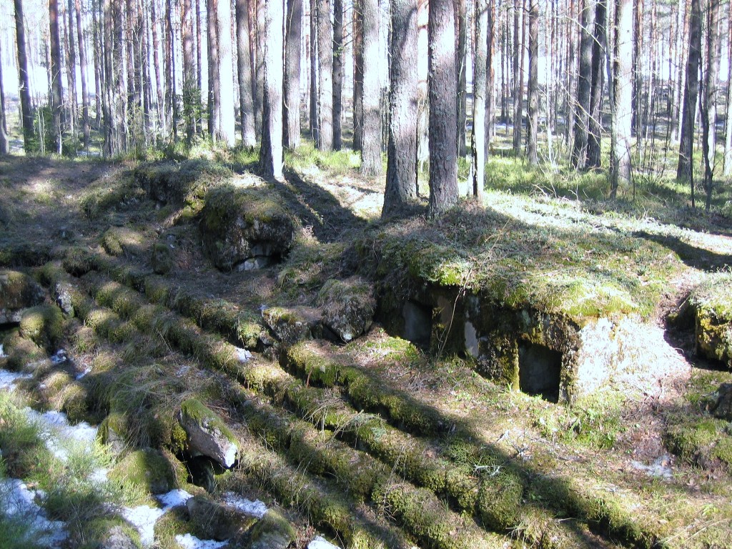 Бетонированный (заросший мхом) стрелковый бруствер внешнего оборонительного обвода. Ниши - для выкладки боеприпасов