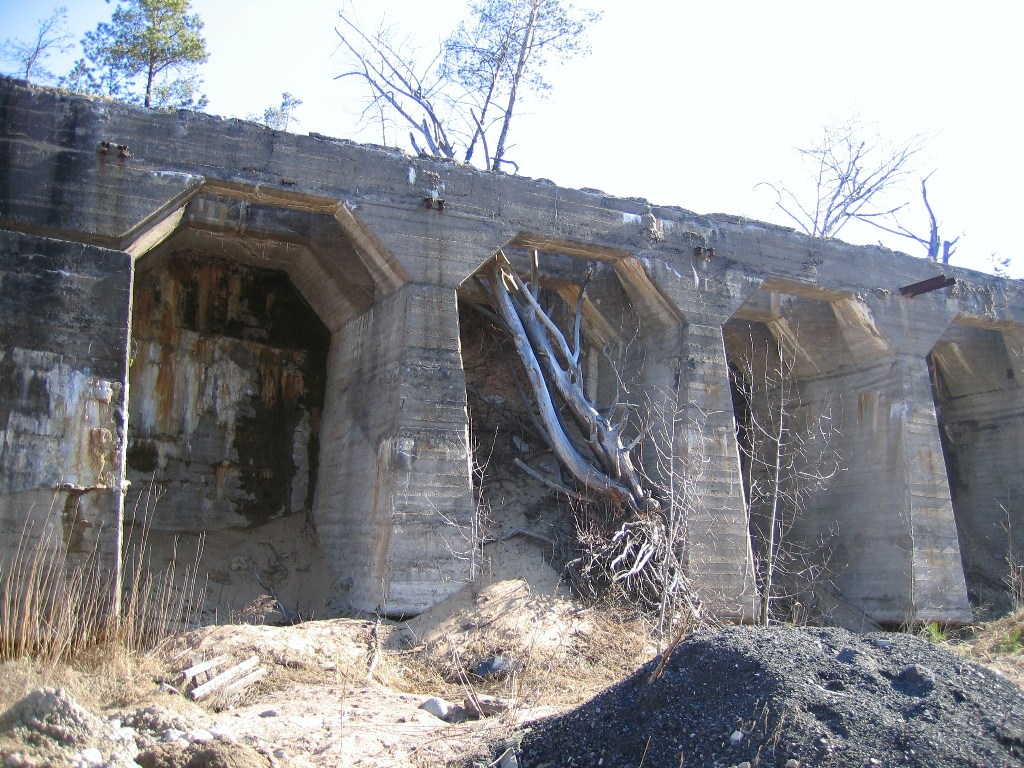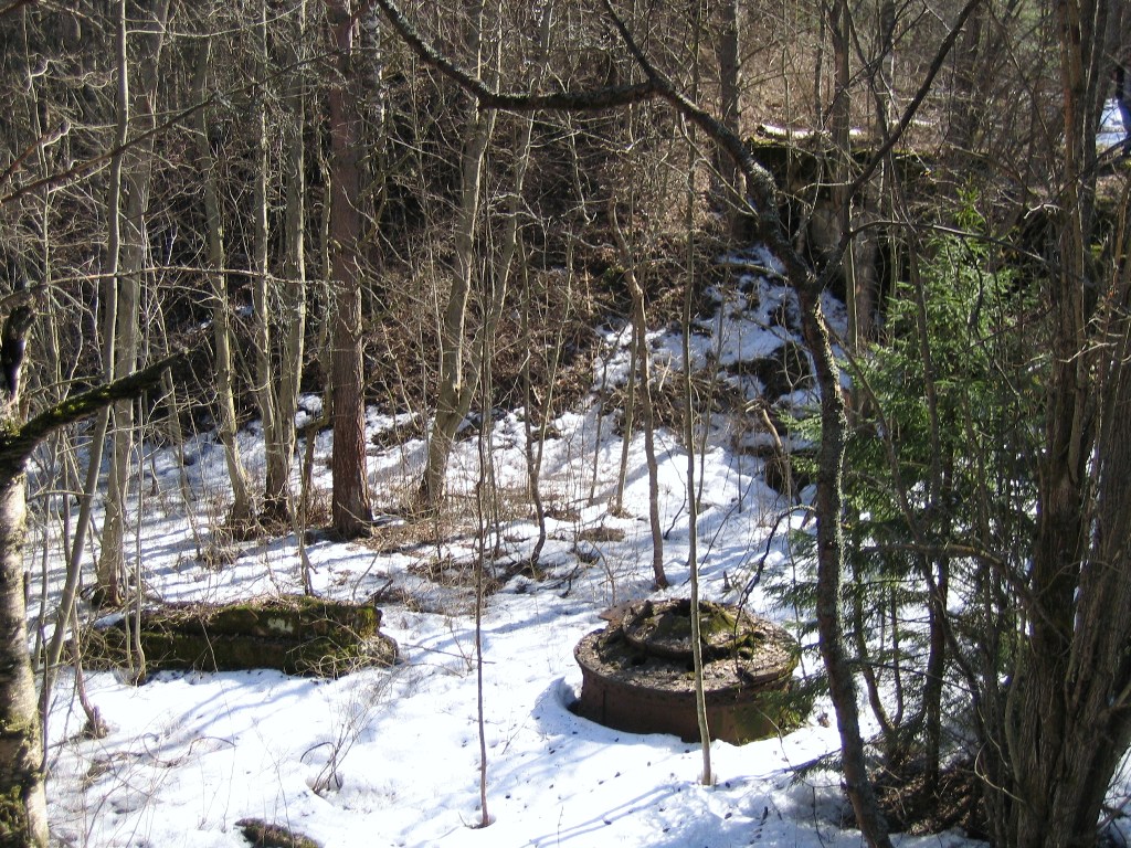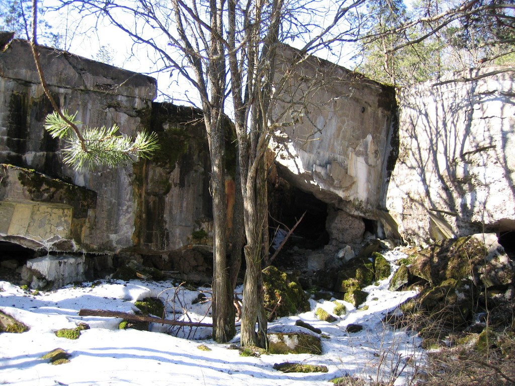 То, что было когда-то 12" башенной батареей. Собственно фронтальные бетонные конструкции - опора ж/д полотна для козлового крана, использовавшегося при монтаже-демонтаже орудийных установок. Была скрыта земляным валом.