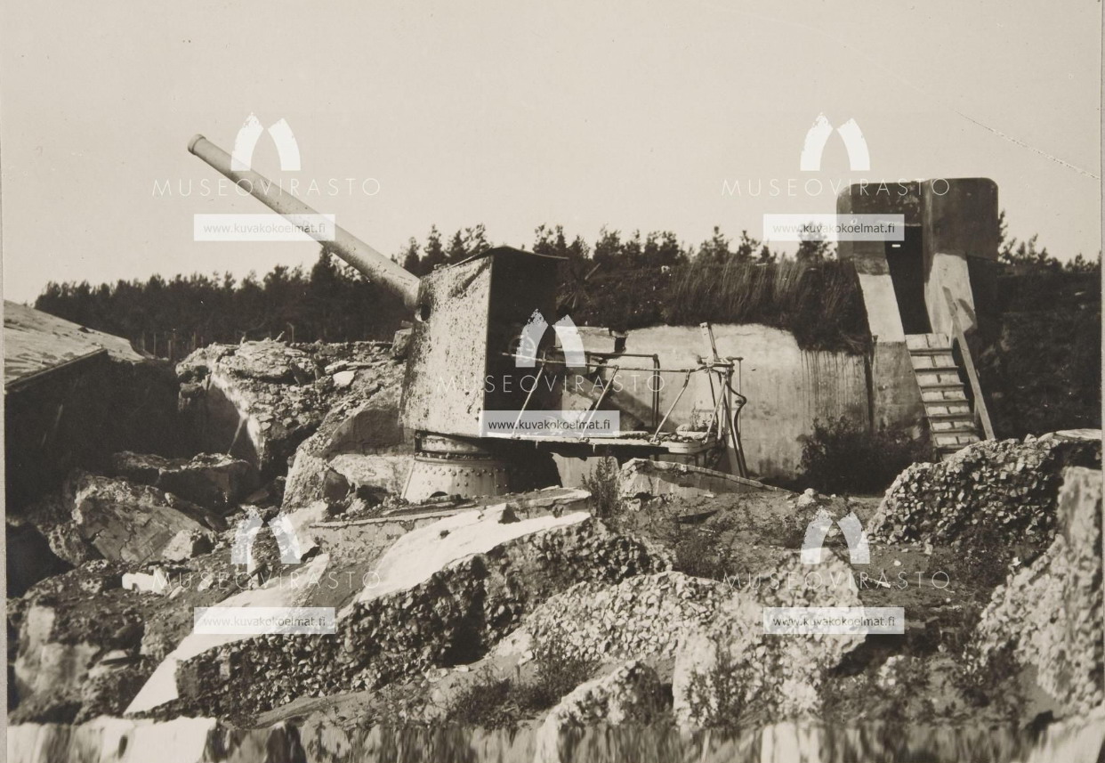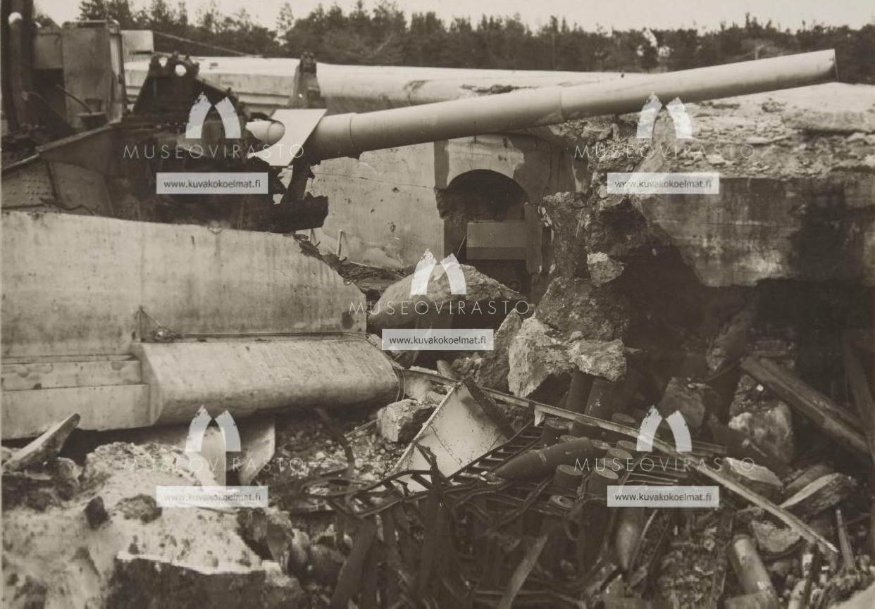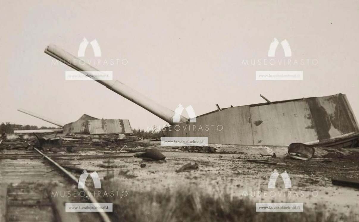 180мм (?? так на финской фото. Таких орудий, вроде как, не было...) орудие 14 мая 1918г после взрыва батареи
