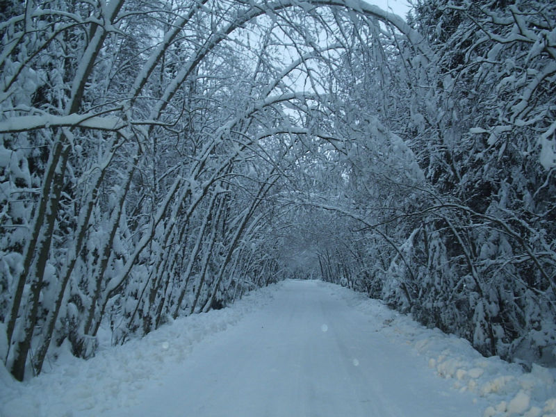 Лес в снегу просто великолепен.Над дорогой к Пасторскому озеру склонились и прогнулись деревья под тяжестью прилипшего снега.