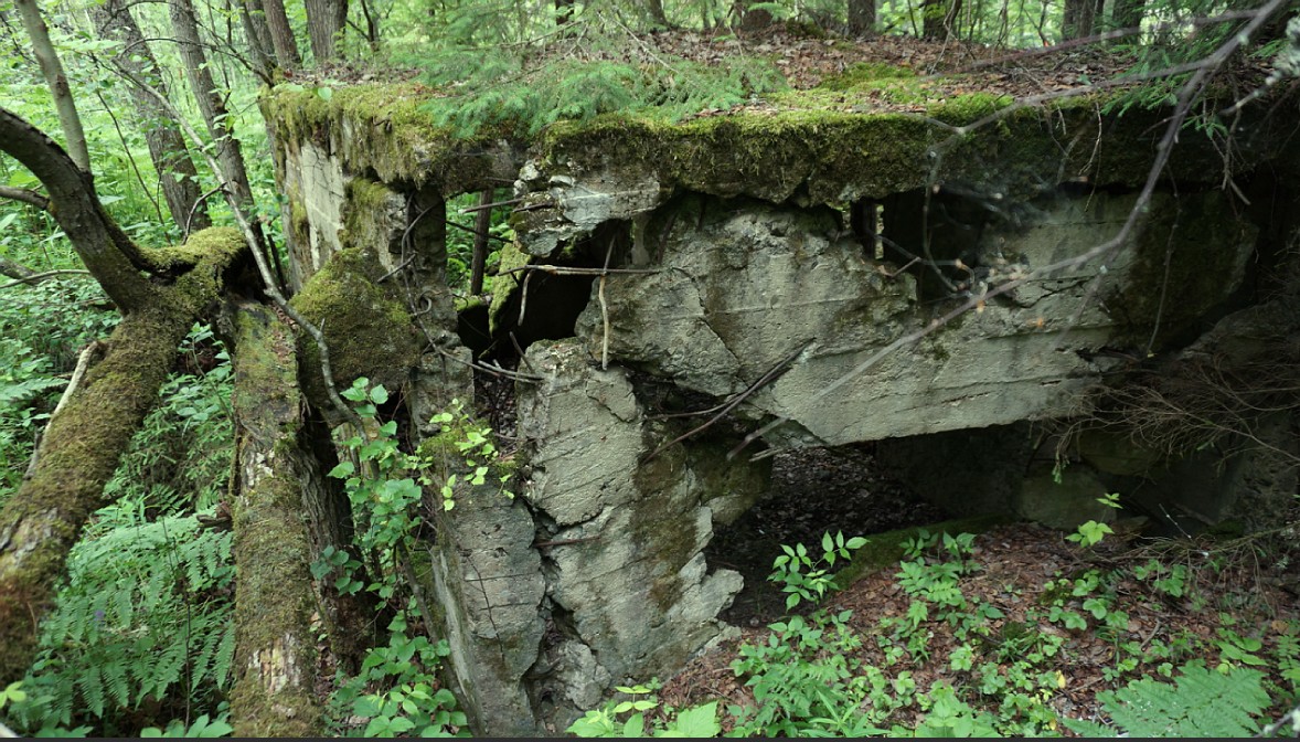Первый дот на пути - ложная точка. Тонкий бетон. Или сам завалился, или наши подорвали ( зачем только?), или финны чем-то попали. В общем - ничего особенного