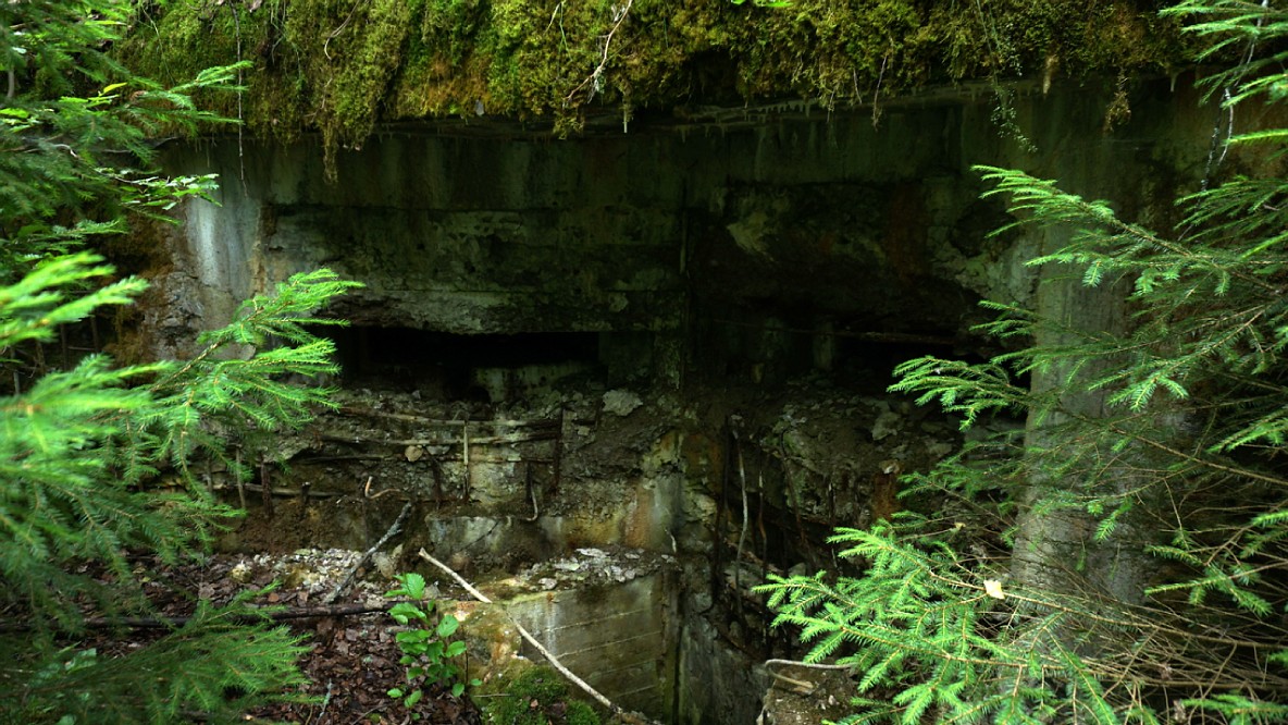 Амбразуры этого дота смотрят под углом градусов 90 друг к другу. Одна на практически чистый восток