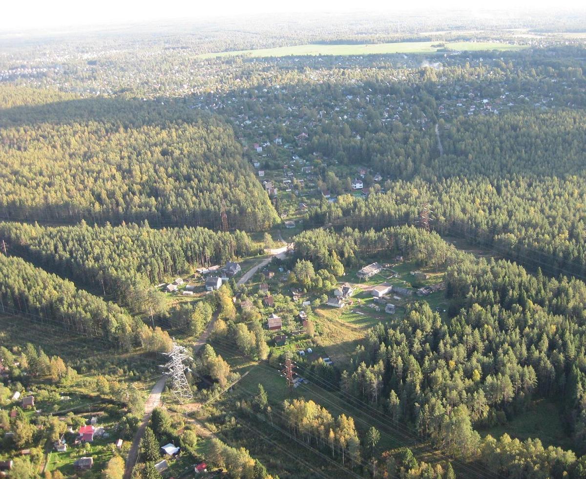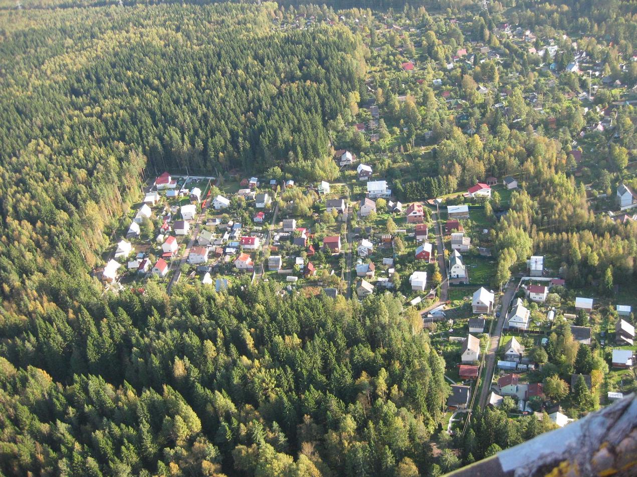 Тут не видно, праавее. Антенна примерно на границе нашего садоводства. Примерно обвёл границы.