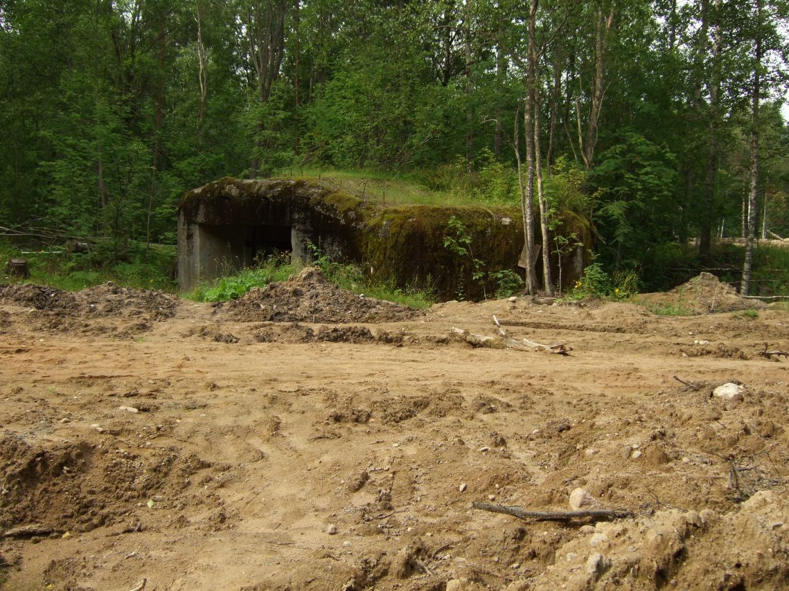 Нашёл-таки! Хотя, без подсказок, конечно же, не нашёл бы. Неперестаю удивлятся, как оно там сохранилось и как же о нём ничего не было известно. Ведь наткнуться на него местному жителю случайно гораздо проще, чем найти близнеца №1. Место установки, конечно, более чем удачное - простреливается практически весь фронт и ближние дороги. Пресловутая "дорога параллельная шоссе" таковой являлась и на финской карте присутствует, но сейчас по ней идёт ЛЭП.