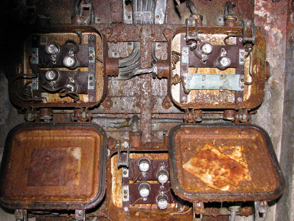 На втором - трехфазный токоввод с галетником, защищенный плавкими вставками с кварцевым песком (для "гашения дуги").