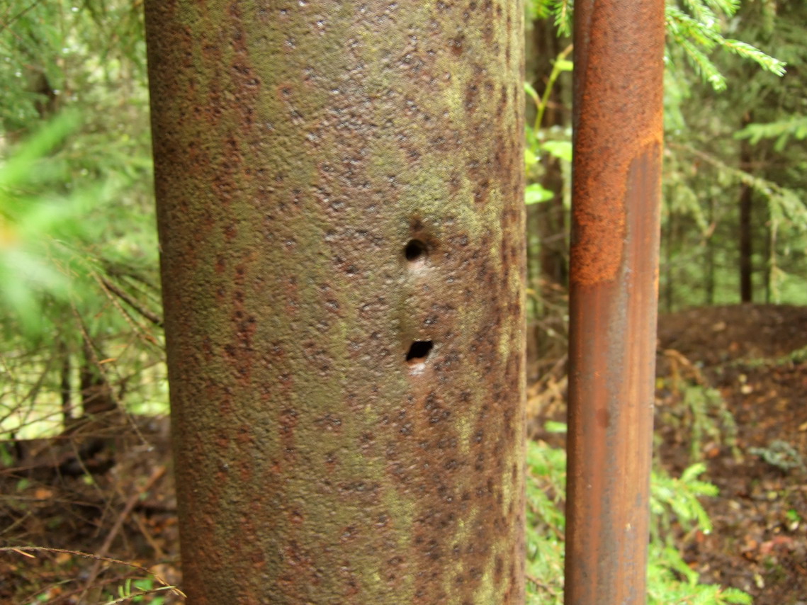 Дело все в том, что данная " труба для буровых скважин" находится на покрытии дота. Вряд ли там собирались добывать нефть. Диаметр ее сантиметров 15, толщина стенки около сантиметра ( чуть меньше)