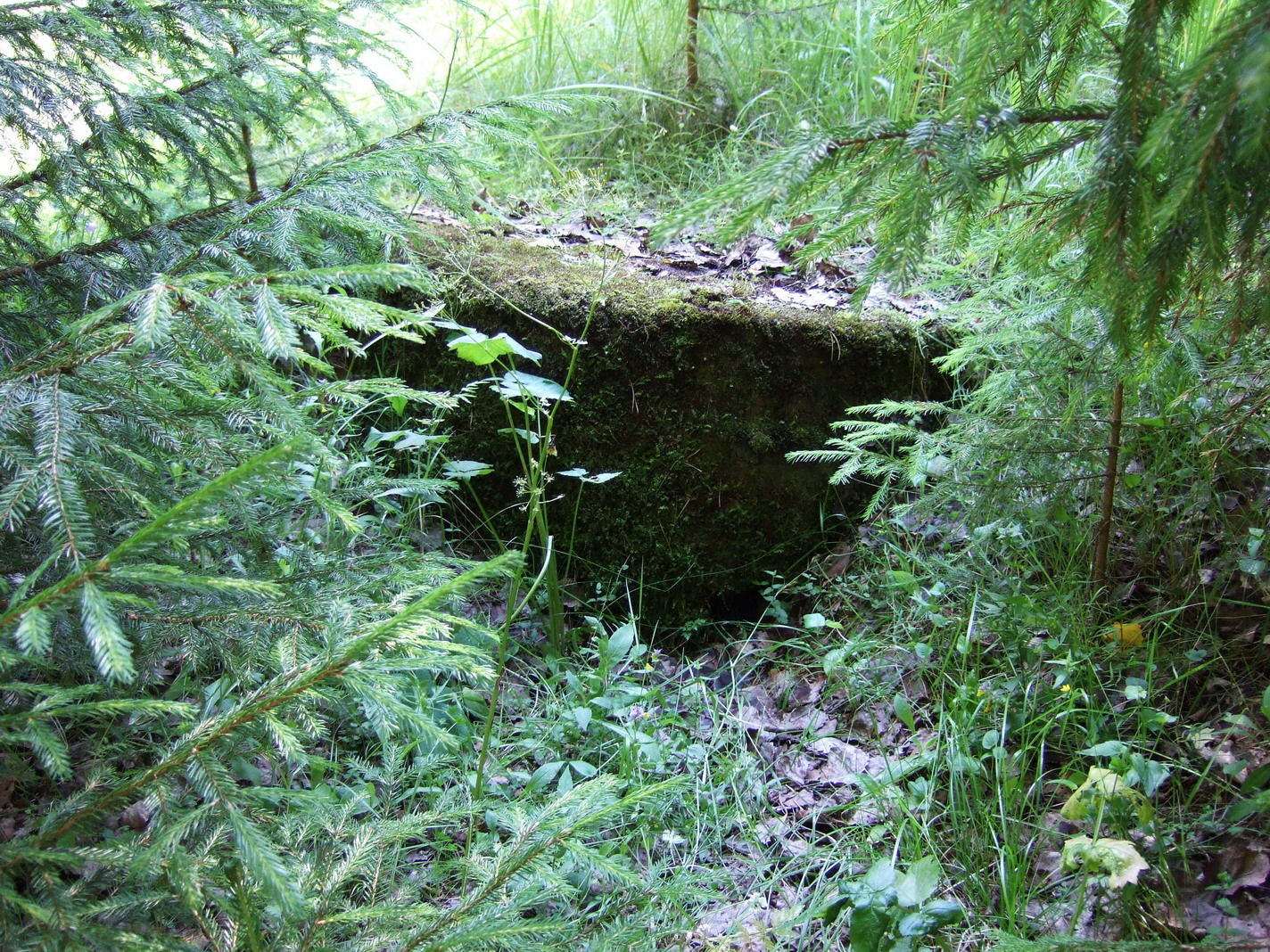 Что же заинтересовало. Нашел некое сооружение под орудие, вероятно. Размер 3,5 на 8 метров. Высота около 60-70 сантиметров. Спереди бетонная стенка, по бокам наклонные сваренные швеллеры. Возможно, на них укладывался какой-то помост, и орудие выкатывалось вперед. Но для чего?...