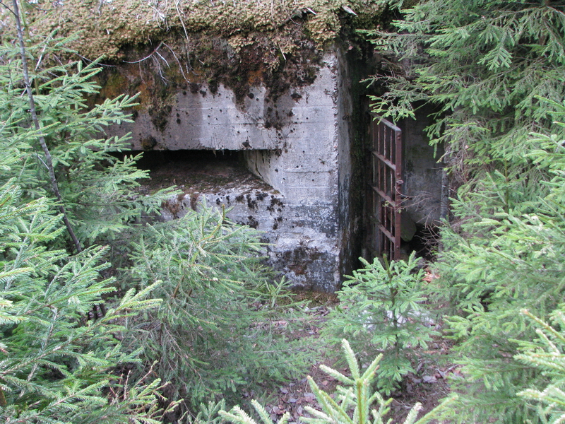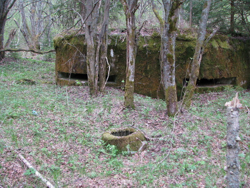 Какой-то из двух дотов на горе (37км): тот, что на фото или тот, что западнее (уже под домом), является НП (внутри не был, а на форумах НП называется то один, то другой). Может быть, поэтому и амбразуры часто расположены.
