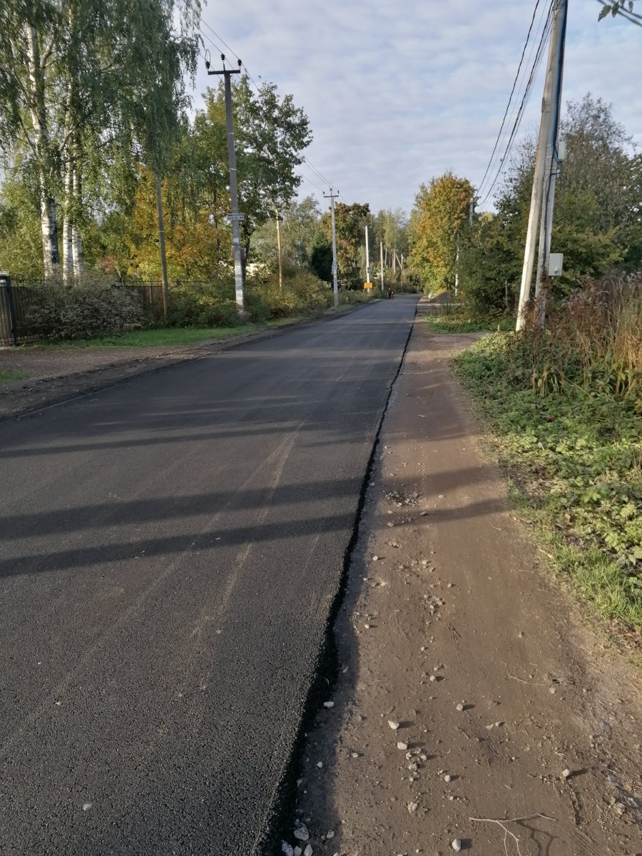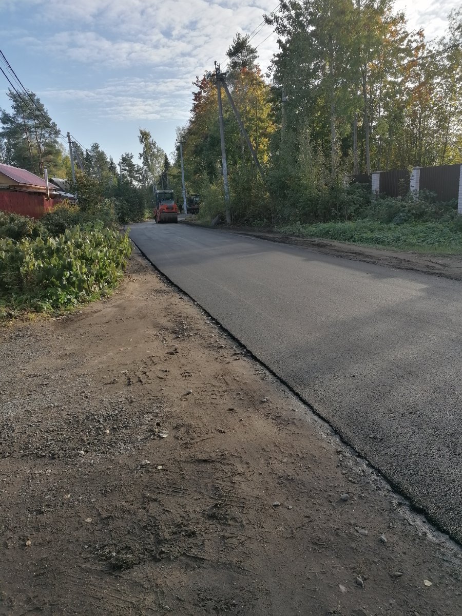 Успел сегодня до 9.00 проскочить до Пасторского озера.Асфальтоукладчик и каток стояли на перекрестке дорог у лесника(егеря).Там где были лежачие полицейские порог асфальта видимо второй слой.Ну а так асфальт до Выборгского шоссе ,,желает лучшего,, если это первый слой то тогда ладно.Если не будет подсыпки по бокам от асфальта ,то будет полная фигня.