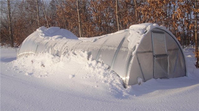 Тем, кто не желает менять парник по весне, нужно скинуть снег с крыши и окопать вокруг...