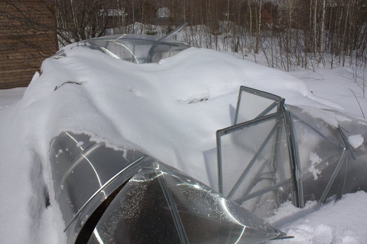 Вниманию всех, ко не чистил снег с поликарбонатных парников с начала зимы.