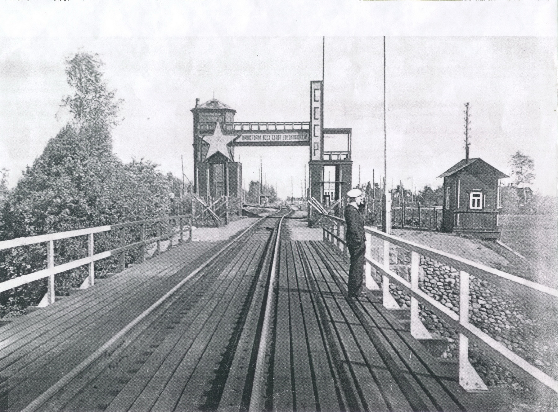 Бело — красный пограничный мост. (На середине моста стоит студент Reino Turkki будущий командующий ВВС Финляндии).
