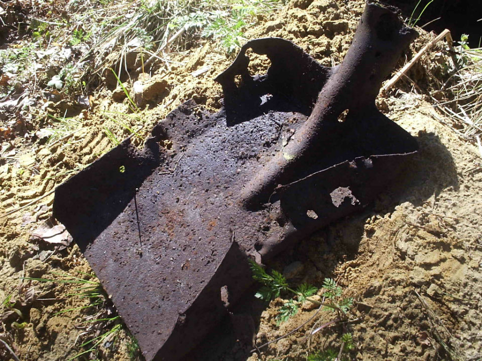 Лопата изрешеченная пулями и осколками.