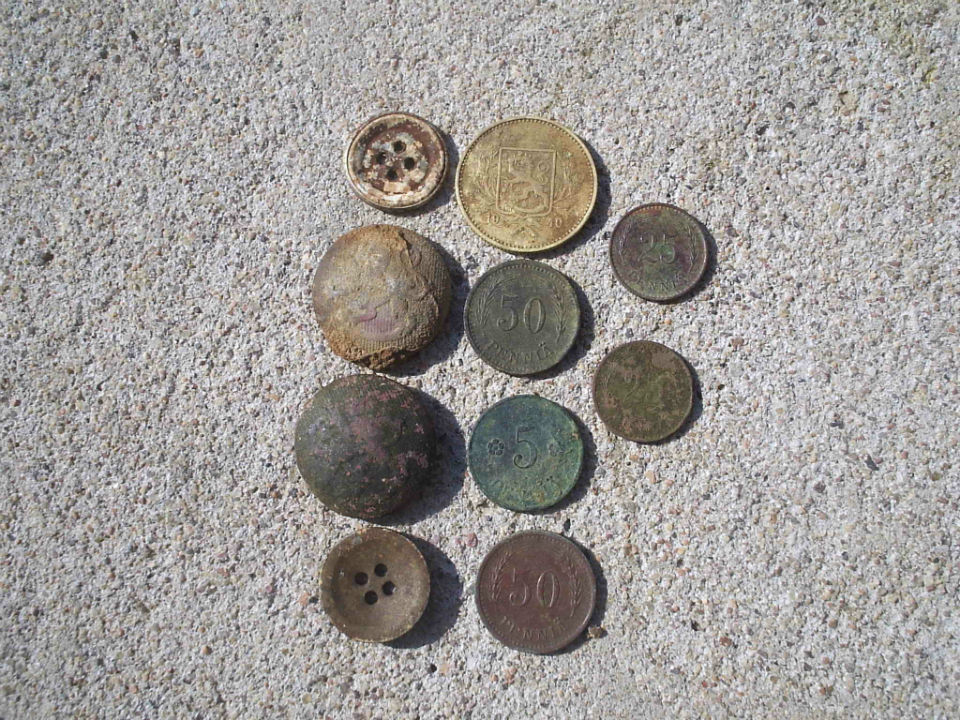 Пуговицы и финские монетки.
