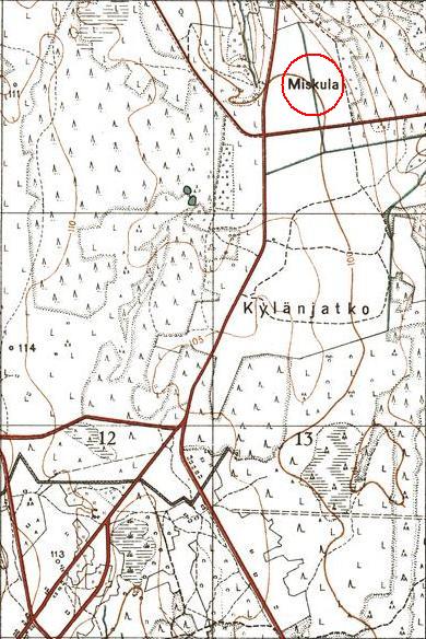 В списке населённых мест 1862 года мыза находится рядом с Мисколово (расстояние от Питера одинаковое). А Мисколово - это севернее, у речки Кюлеятки.