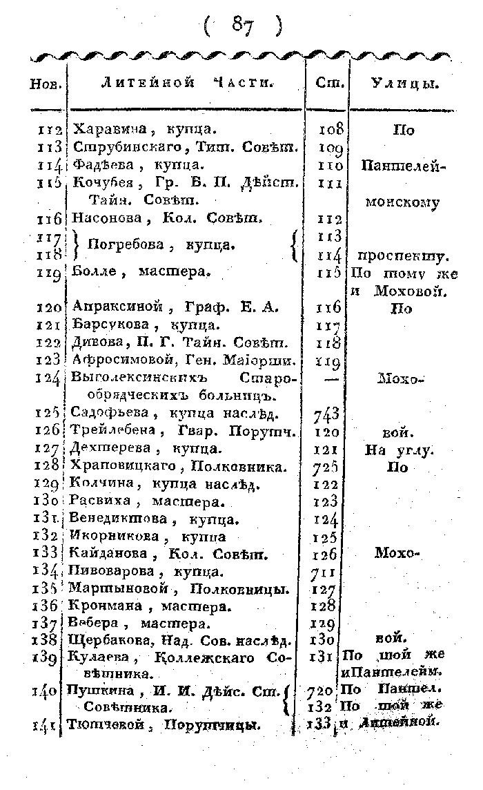 Судя по вышеупомянутым книжкам, даже сокращалась. Не сохранились самые "центровые" участки - на Моховой и на Фонтанке. Я так понимаю, пик богатства и могущества пришёлся на Кайданову. А с её смертью дело пошло на спад.краевед эксперт писал(а):Могу, с большой степенью точности, сказать, что по данным архивных документов, после смерти Кайдановой, недвижимость Ольхиных-Кайдановых не увеличивалась .