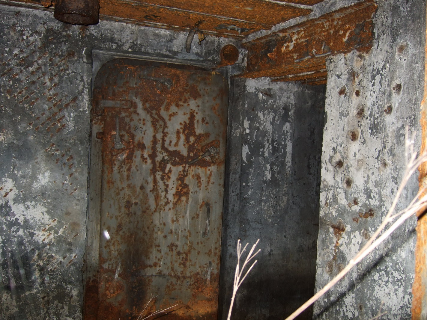 Куда сковыривать? В канал - нельзя. К тому же, дот все-таки высокий, а так только крышу и частично боковые стенки убрали. Тем более, что бетон низкого качества