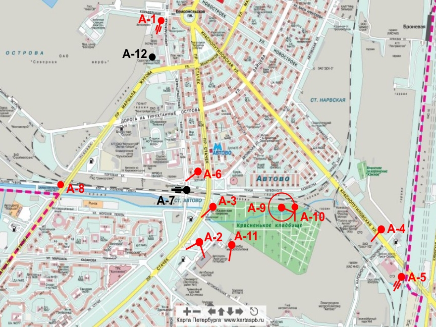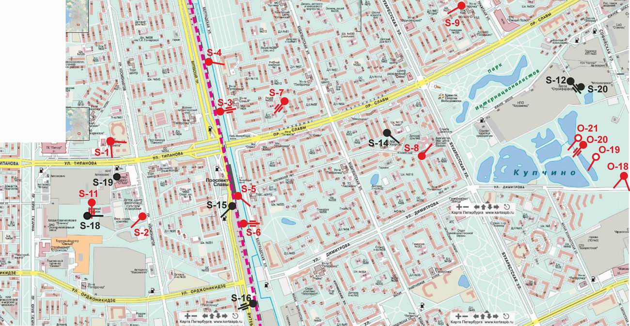 Схема 5. ДОТы условного узла «S» — Проспект Славы–улица Типанова.